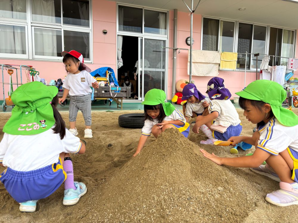 | みんなでトランプしよぉ〜❣ 友達が誕生日だから、ケーキ作ろぉ〜❣ 見て見て・・鉄棒で、こんなことできるよ〜! 大きい山できたよ❣ そんな声が聞こえてきたり・・・ 友達と運動会ごっこやおうちごっこが始まったり❣いろんなところでいろんな遊びが盛り上がっています\(^o^)/ |
