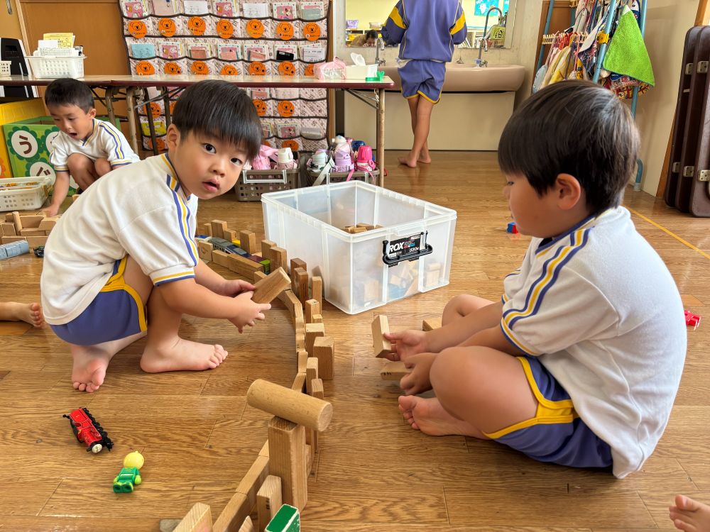 | 友達と一緒に考えたり、相談したりしながら、時には、譲り合いながら遊んでいます。友達と一緒に作り上げると遊びも会話もより盛り上がります。おもちゃを通じて、仲良く遊べていいね!(・∀・)イイネ!! 令和8年度 保育所入園申込書「入園のてびき」を配布中です! |