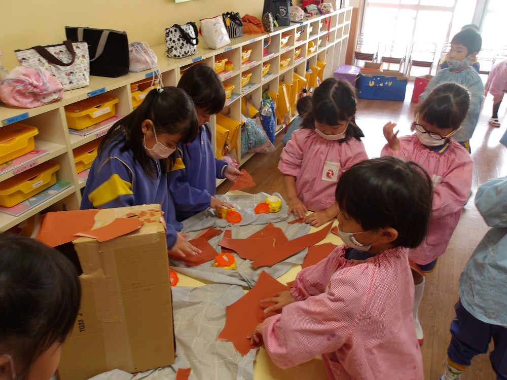 | ハロウィン🎃に興味津々の子どもたちです。先生も一緒になって変身グッズを作成!身に着けて楽しんだり♪ノリノリになってみんなでダンスを踊ったりしましたよ! |