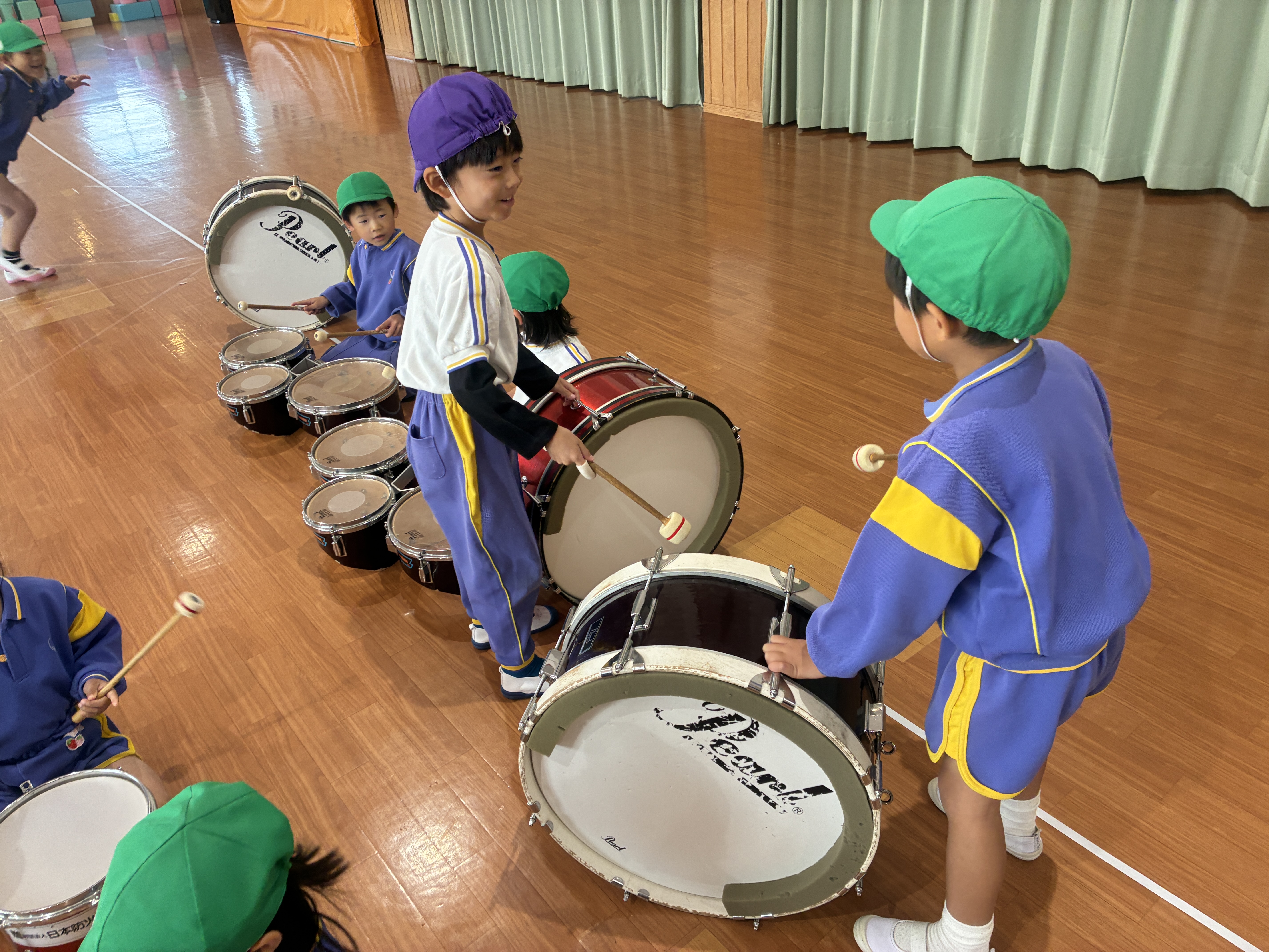 今日はみんなで鼓隊パレードごっこをしました!!!自分のパートではないものを楽しみました!!!