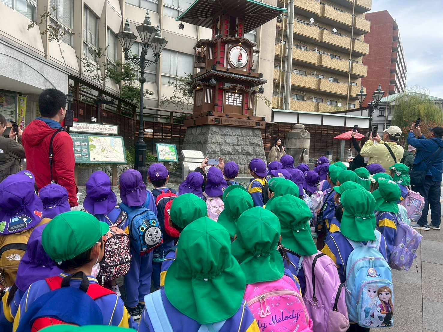 今日は、年長組のみんなで、道後温泉商店街の探検と、道後公園で遊びました!!