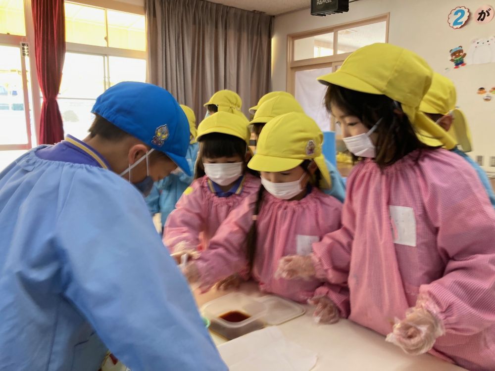| 3月のひなまつりに向けて制作を楽しみました♪透明の折り紙に大喜びの子どもたち。「ぴんくいろにみえる〜!」と折り紙越しに周りを見て、楽しみながら制作することができました。 ☆令和8年度園児募集中 随時見学可(要連絡)☆ ☆親子くらぶ実施中☆ 3月 3日(火) 室内遊びを楽しもう! 3月10日(火) 年少組さんと遊ぼう! 事前にお申し込みください。 977−7548 |
