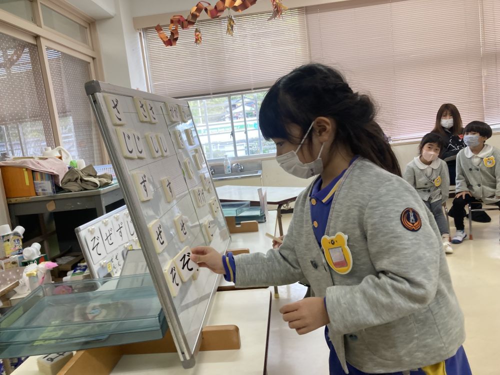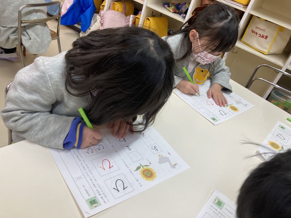 | 今日は、わくわくたいむ♪朝から楽しみにしていた子ども達です。濁点も学ぶ事ができました。 ☆令和8年度園児募集中 随時見学可(要連絡)☆ ☆親子くらぶ実施中☆ 12月9日(火) クリスマス会を楽しもう! 事前にお申し込みください。 977−7548 |
