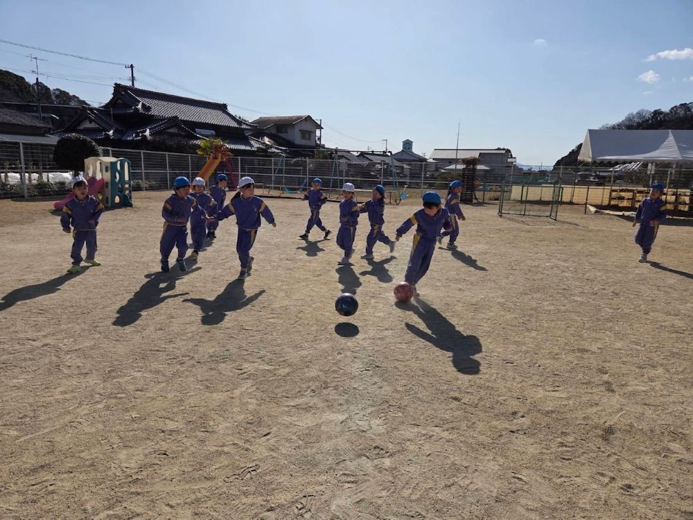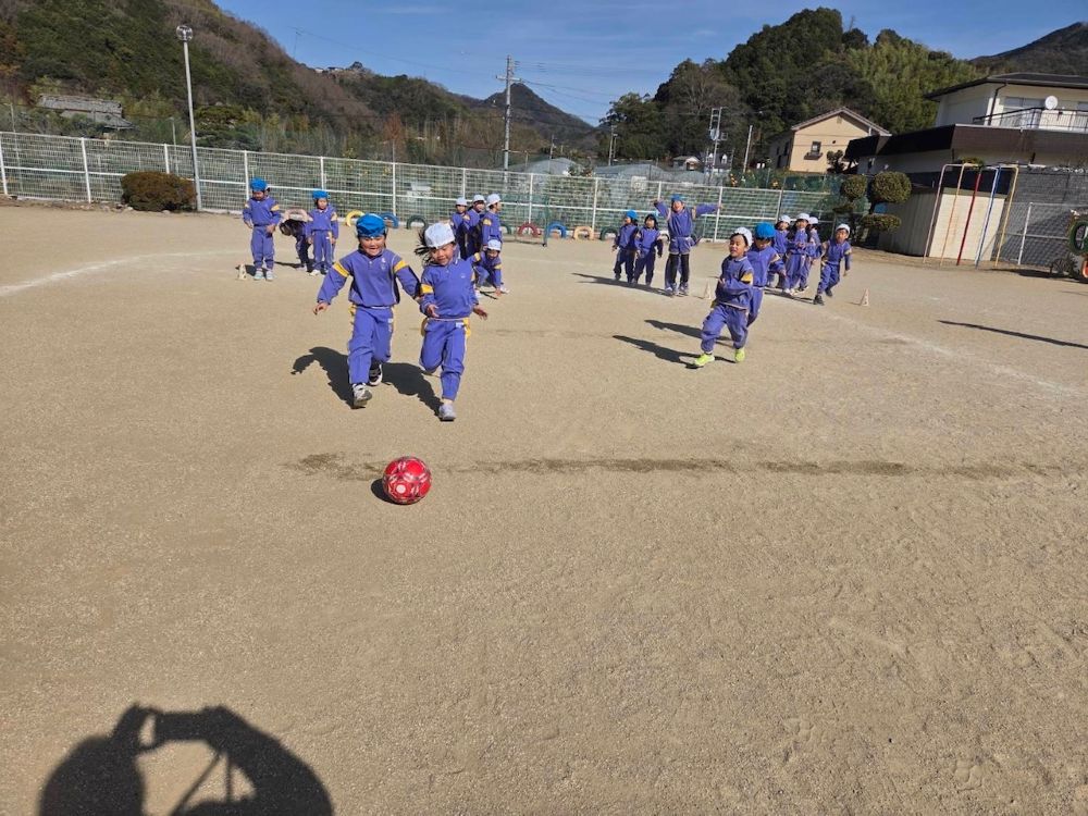 | 今年初のサッカー☆!寒さに負けずにチームのお友達と元気いっぱい楽しんでいました。 ☆令和8年度園児募集中 随時見学可(要連絡)☆ ☆親子くらぶ実施中☆ 1月23日(金) 室内遊びを楽しもう! 2月 4日(水) 室内遊びを楽しもう! 2月17日(火) 年中組さんと遊ぼう! 3月 3日(火) 室内遊びを楽しもう! 3月10日(火) 年少組さんと遊ぼう! 事前にお申し込みください。 977−7548 |