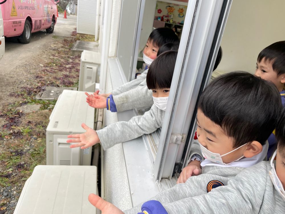 | 「ゆきがふりよる〜!」と子ども達はおおはしゃぎ!「ゆきやこんこん♪」と口ずさんでいました。 ☆令和8年度園児募集中 随時見学可(要連絡)☆ ☆親子くらぶ実施中☆ 1月23日(金) 室内遊びを楽しもう! 2月 4日(水) 室内遊びを楽しもう! 2月17日(火) 年中組さんと遊ぼう! 3月 3日(火) 室内遊びを楽しもう! 3月10日(火) 年少組さんと遊ぼう! 事前にお申し込みください。 977−7548 |