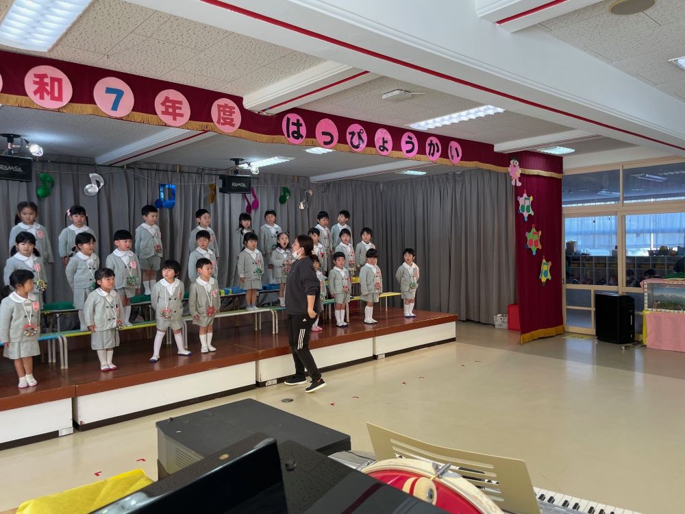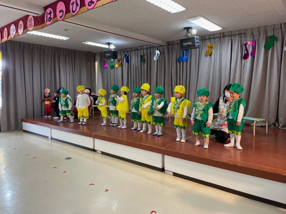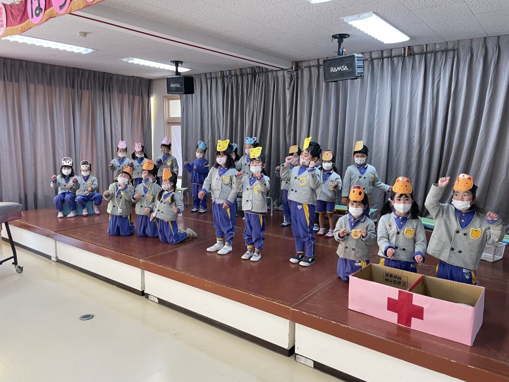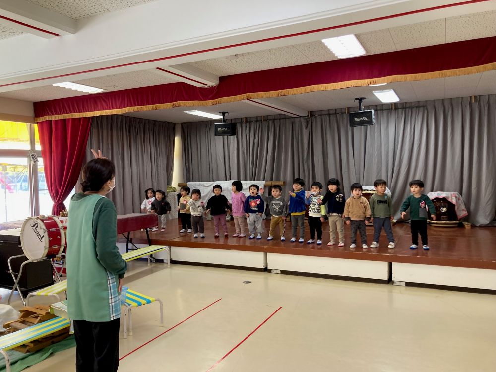 | 明日の総練習に向けて、みんなで見せあいっこ♪他学年の歌や台詞を覚えて一緒に口ずさむ姿もあり、みんなで発表会を楽しみにしています。 ☆令和8年度園児募集中 随時見学可(要連絡)☆ ☆親子くらぶ実施中☆ 2月 4日(水) 室内遊びを楽しもう! 2月17日(火) 年中組さんと遊ぼう! 3月 3日(火) 室内遊びを楽しもう! 3月10日(火) 年少組さんと遊ぼう! 事前にお申し込みください。 977−754 |