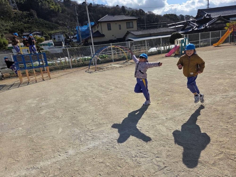 | 発表会に向けて練習を頑張っている年長組さん♪頑張った後は、大好きなお外タイム!おおはしゃぎです!! ☆令和8年度園児募集中 随時見学可(要連絡)☆ ☆親子くらぶ実施中☆ 2月 4日(水) 室内遊びを楽しもう! 2月17日(火) 年中組さんと遊ぼう! 3月 3日(火) 室内遊びを楽しもう! 3月10日(火) 年少組さんと遊ぼう! 事前にお申し込みください。 977−7548 |