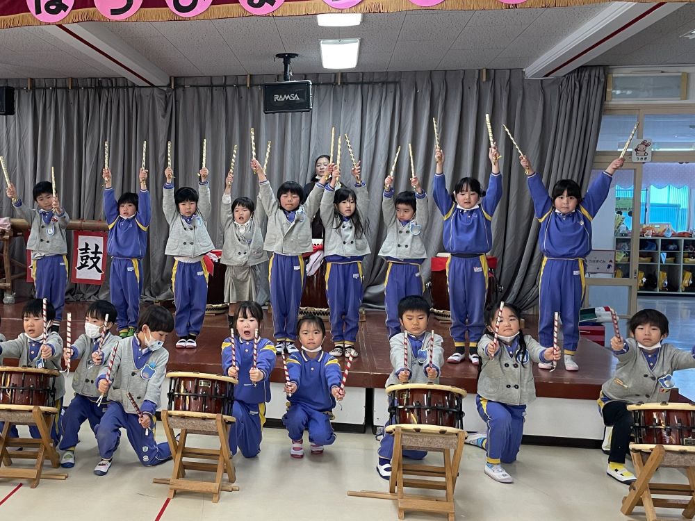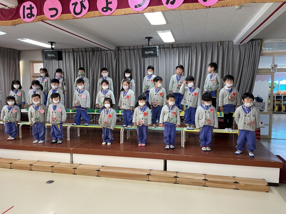 | 歌やダンスなど、発表会に向けて練習を楽しんでいます♪他学年と見せ合いっこをしながら、拍手をもらったり、「すごい!」と言ってもらったりと自信につながっている子ども達です。 ☆令和8年度園児募集中 随時見学可(要連絡)☆ ☆親子くらぶ実施中☆ 2月 4日(水) 室内遊びを楽しもう! 2月17日(火) 年中組さんと遊ぼう! 3月 3日(火) 室内遊びを楽しもう! 3月10日(火) 年少組さんと遊ぼう! 事前にお申し込みください。 977−754 |
